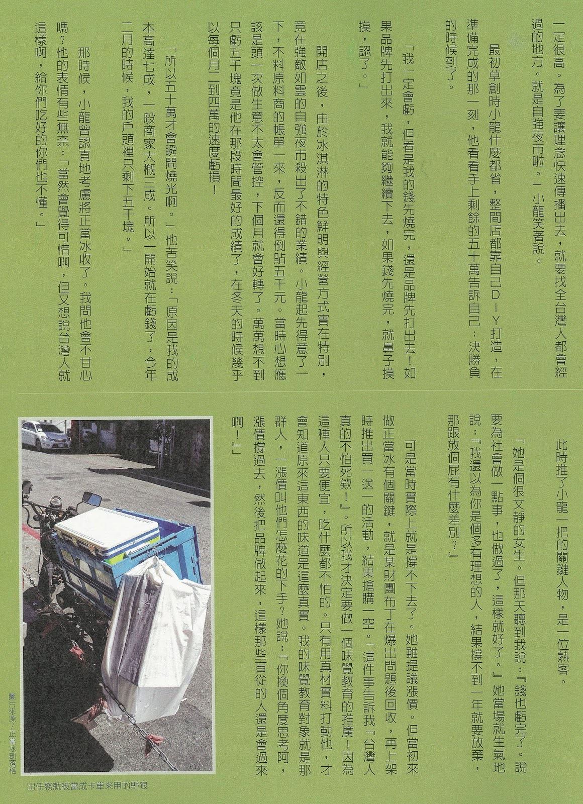 那時候,小龍曾認真地考慮將正當冰收了。我問他會不甘心嗎?他的表情有些無奈:「當然會覺得可惜啊,但又想說台灣人就這樣啊,給你們吃好的你們也不懂。」